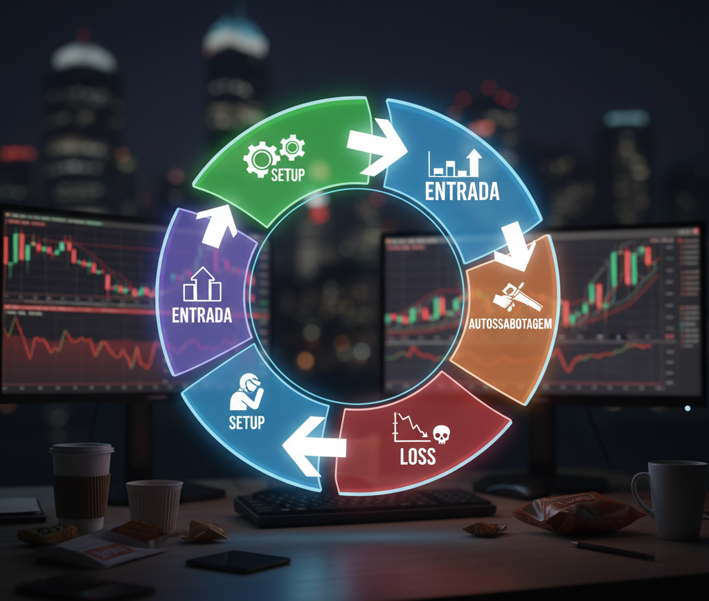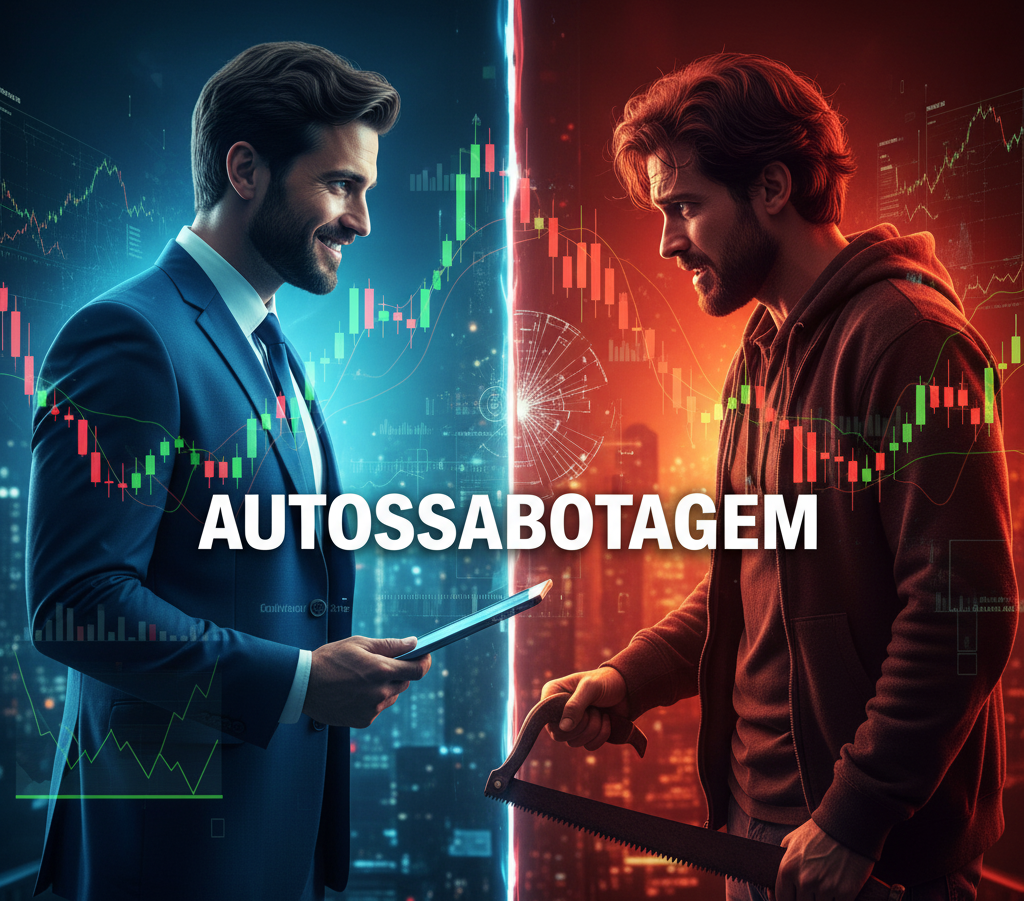 Hoje vou confessar algo que me custou muito para admitir: por muito tempo, eu fui meu pior inimigo nos mercados. Não eram os algoritmos, nem os market makers, nem a volatilidade – era eu mesmo sabotando meus próprios trades, e pior, fazendo isso de forma completamente inconsciente.