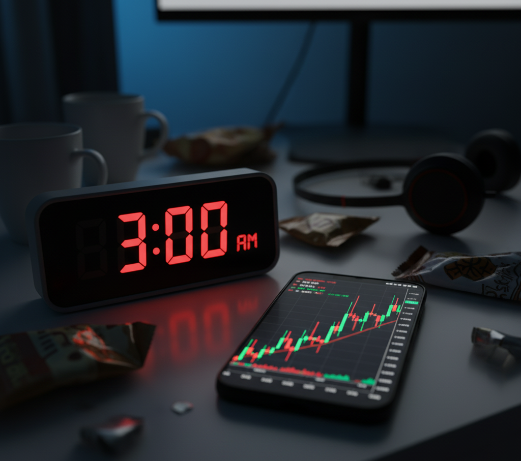 Comecei a dormir cada vez mais tarde, prometendo a mim mesmo que seria “só mais 15 minutos”. Virava 2h, 3h da manhã analisando mercados internacionais, mesmo sem operar. O cansaço se acumulava, mas a compulsão era mais forte.